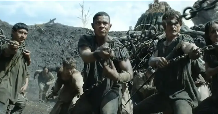 Já no terceiro episódio temos uma cena de ação bastante dramática, quando Arrondir e os outros elfos tentam sua fuga das trincheiras dos Orques. Com coreografias criativas, estratégias bem trabalhadas e o massacre brutal de todo o grupo -- exceto por Arrondir, é claro -- o que vemos é um combate e tanto! Além de destacar a crueldade dos Orques e a maneira que eles conseguem utilizar da força bruta e suas bestas para antagonizar os heróis, a cena também serve para mostrar como os elfos conseguem ser graciosos mesmo nas condições mais atrozes.