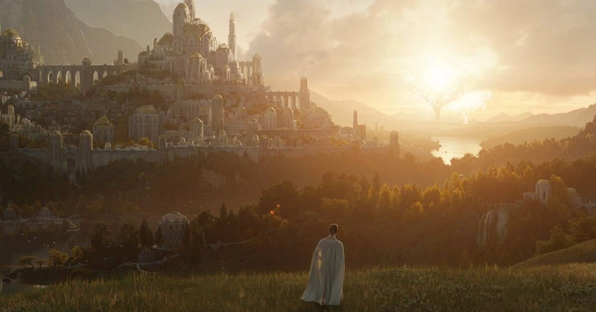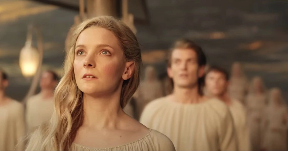 Episódio 1 - A sombra do passadoJá nos primeiros instantes de A Sombra do Passado (título bastante sugestivo tanto para a história em si quanto para a bagagem da saga de Tolkien), temos uma ideia de quem será o grande destaque da série: Galadriel (Morfydd Clark). A partir de uma narração de seu eu mais velho, acompanhamos a Elfa quando ela era apenas uma menina em Valinor, seu antigo lar, enquanto algumas crianças tentam afundar seu barco de papel na água. Irritada, Galadriel investe contra eles, mas é interrompida pela aparição de seu irmão mais velho, es dois conversam em uma paisagem ensolarada. Esse é apenas um aperitivo para os visuais impressionantes que a série logo passará a mostrar ao longo do episódio.