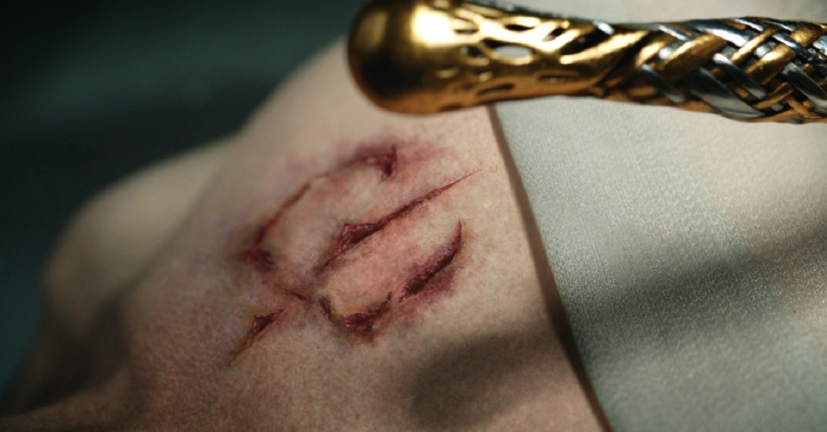 Mas devemos retornar à conversa de Elrond com Gil-galad, pois é nesse momento que o Alto-Rei apresenta Celebrimbor (Charles Edwards). Aqui vale prestar bastante atenção porque essa figura é extremamente fundamental no que diz respeito à forja dos Anéis de Poder, já que ele teve uma participação ativa no processo. Na cena, Gil-galad diz apenas que Celebrimbor está prestes a iniciar um projeto importante e que o ferreiro precisa de ajuda para isso. Por sua vez, Bronwyn e Arondir aparecem novamente. Os dois estão indo em direção a Hordern, uma comunidade nas redondezas que pode fornecer respostas sobre a misteriosa doença que vem assolando os animais. Acontece que, quando a dupla chega no local, ele está completamente destruído. Saindo das Terras do Sul, entramos nos Mares Divisores, onde vemos Galadriel e os demais soldados élficos, que foram honrados na cerimônia de Lindon, em direção a sua jornada para Valinor. A preparação para a passagem se inicia, e Galadriel hesita ao abrir mão de sua espada.