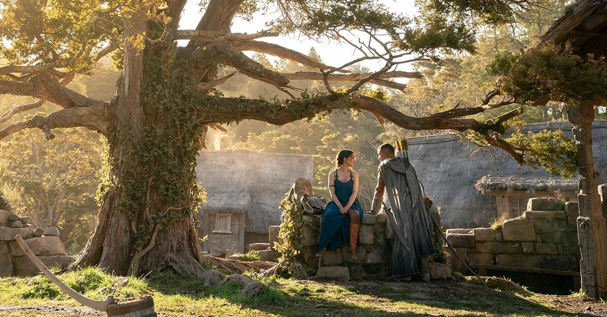Conhecemos, então, Arondir (Ismael Cruz Córdova), um Elfo que viveu toda a sua vida na Terra-média, sem nunca ter pisado os pés em Valinor. Arondir é, de longe, uma das adições mais interessantes em Os Anéis de Poder. Assim como Nori, ele promete ter um papel essencial na trama. Por ser um soldado, Arondir faz parte dos vigilantes dos Homens das Terras do Sul, cujos ancestrais tinham se aliado a Morgoth anteriormente. Acontece que, apesar do receio dos Elfos em relação à espécie humana, isso não impediu com que Arondir se afeiçoasse à curandeira Bronwyn (Nazanin Boniadi). É nítido que ambos possuem sentimentos românticos um pelo outro, algo que pode ser notado com maior intensidade quando eles interagem na frente de um poço. Porém, essa relação pode não ser vista com bons olhos, já que ambas as espécies apresentam comportamentos hostis quando são confrontados.