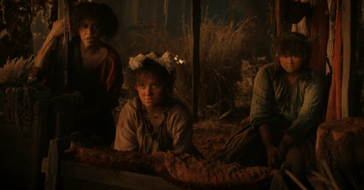 A conversa logo muda de rumo quando Galadriel e Elendil analisam um relato de um espião humano que tinha sido resgatado de um calabouço do inimigo. Nele, há um desenho que mostra sua localização, e a Elfa reconhece que é o mesmo símbolo de Sauron. Isso significa que a marca que vinha tirando o sono de Galadriel desde a morte de seu irmão é, na verdade, um mapa das Terras do Sul. Além disso, as inscrições também falam sobre um plano que seria seguido pelo sucessor de Morgoth se o Grande Inimigo fosse derrotado. O propósito era criar um reino para que o mal pudesse ser expandido, marcando apenas o começo do domínio de Sauron na Terra-média. Após passarmos um tempo considerável acompanhando os núcleos de Galadriel e Arondir, mudamos de ares para observar como os Pés-peludos estão se virando. Começamos a partir de uma conversa entre Largo, o pai de Nori, e Calêndula, a madrasta da garota. Os dois compartilham uma preocupação em comum: como eles irão migrar com o restante do grupo se o tornozelo de Largo ainda está lesionado? Enquanto isso, Nori continua determinada a ajudar o homem do meteoro mesmo que sua amiga Papoula tente tirar essa ideia de sua cabeça. Já que o Estranho parece interessado nas estrelas, o plano de Nori é pegar o livro do líder Sadoc Covas, pois ela acredita que o mapa das estrelas do comandante pode ajudá-la nessa tarefa. Para sua alegria, após algumas tentativas, Nori consegue ter acesso ao mapa enquanto Papoula distrai Sadoc.