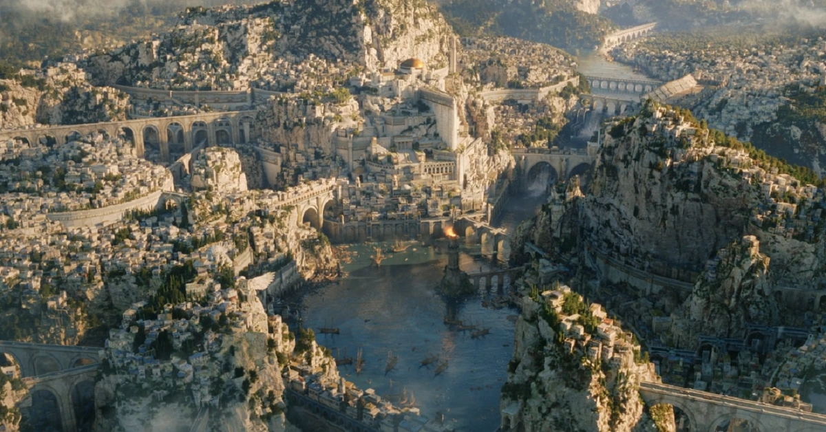 A casa do capitão logo se revela ser Númenor, o mais notório reino dos Homens segundo os escritos de J. R. R. Tolkien. Conforme o navio vai se aproximando de seu destino, vamos conhecendo a grandiosidade da ilha, assim como suas construções imponentes e paisagens magníficas. Númenor é tão impressionante que Halbrand fica deslumbrado pelo fato de que “homens como ele” construíram aquele lugar. É assim que Galadriel começa a explicar que, quando os ancestrais dos Homens se aliaram a Morgoth durante a Grande Guerra, o povo de Númenor permaneceu ao lado dos Elfos. Foi assim que eles “ganharam” a ilha, como uma espécie de recompensa dos Valar. A Elfa também explica que, desde então, Númenor tinha mudado. Se antes os Elfos podiam andar livremente pela ilha, agora já não eram vistos com bons olhos, pois o contato entre as duas espécies foi rompido sem maiores explicações.